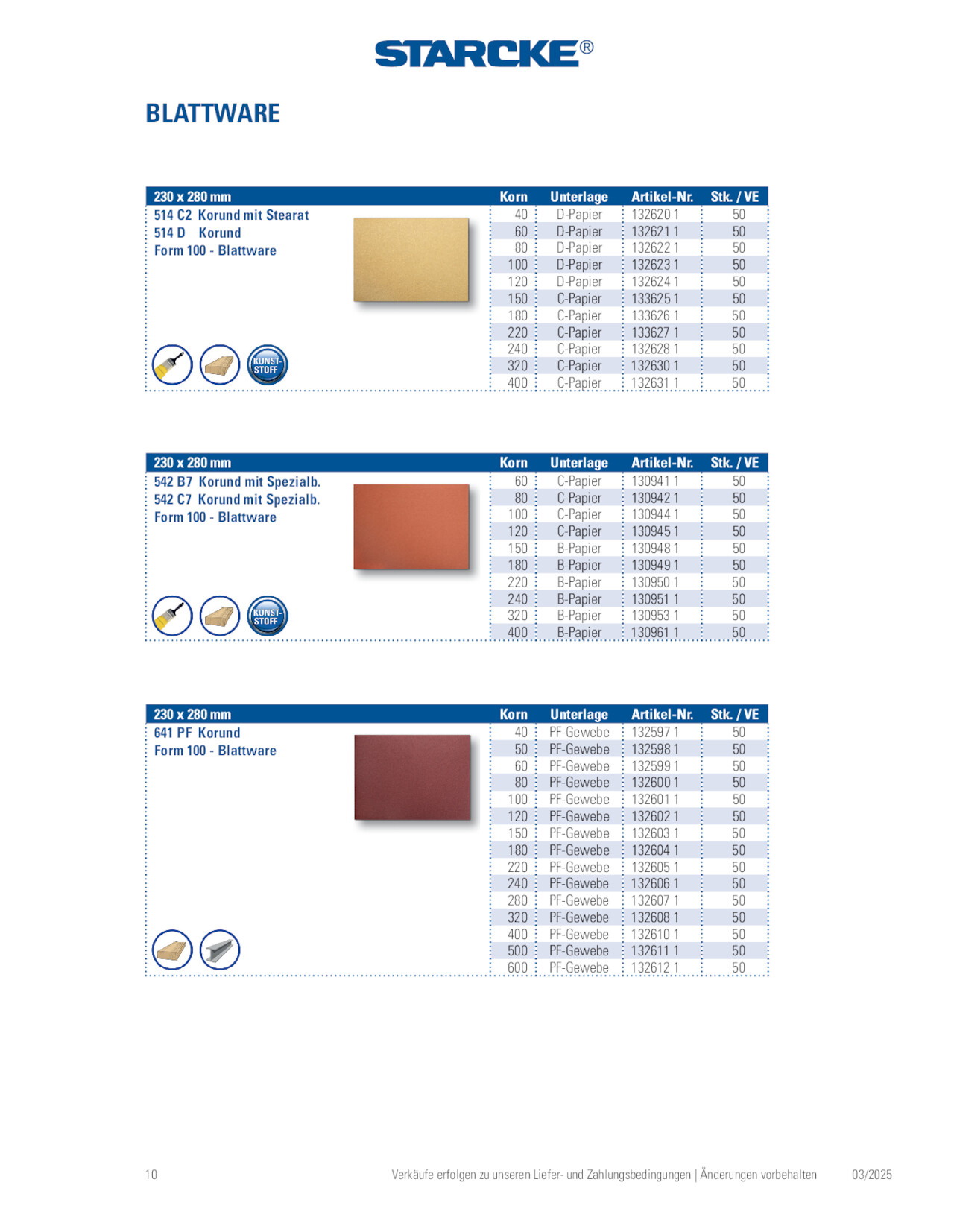 230 x 280 mm 542 B7 Korund mit spezialb. 542 C7 Korund mit spezialb. Form 100 - Blattware