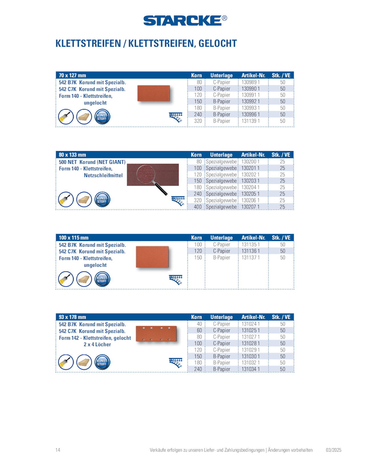 KlettstReiFen / KlettstReiFen, gelOCHt 70 x 127 mm 542 B7K Korund mit spezialb. 542 C7K Korund mit spezialb. Form 140 - Klettstreifen, ungelocht