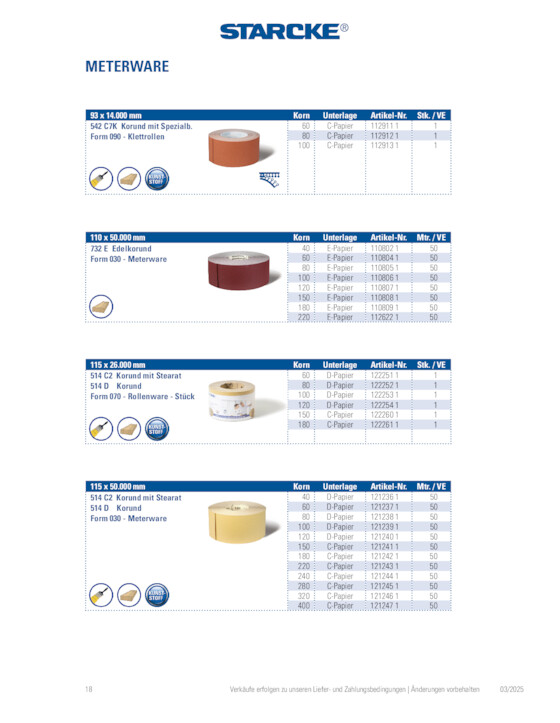 MeteRWaRe 93 x 14.000 mm 542 C7K Korund mit spezialb. Form 090 - Klettrollen