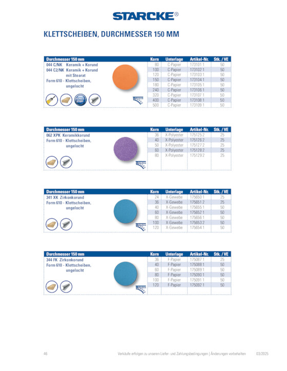 durchmesser 150 mm 341 XK Zirkonkorund Form 610 - Klettscheiben, ungelocht
